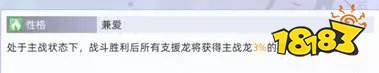 性格是前期刷龙的同时需要注意的东西,因为前期需要卸载龙来获得升级模拟终端的data,但请至少各保留一只六星兼爱性格(将出站经验分给助战位)和爱财/大胆(金币获取提升)性格(据传六孔蛋具有更高的兼爱出率,盛总没有公布细节)
